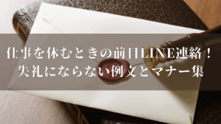 例文 仕事を休むときの前日LINE連絡!失礼にならない例文とマナー集 急に休む必要が出たとき、「LINEで連絡しても大丈夫かな?」と迷ったことはありませんか。特に前日に休むことが分かっている場合、相手に失礼のない伝え方を心がけることで、職場の信頼を損なわずに済みます。この記事では「仕事休む line 例文 前... 2025.09.07 例文