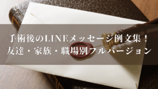例文 手術後のLINEメッセージ例文集!友達・家族・職場別フルバージョン 手術を終えた人にLINEでメッセージを送るとき、どんな言葉を選べばいいのか迷う方は多いのではないでしょうか。相手を励ましたい気持ちはあっても、表現によってはプレッシャーになったり、かえって負担をかけてしまうこともあります。そこで本記事では、... 2025.09.08 例文